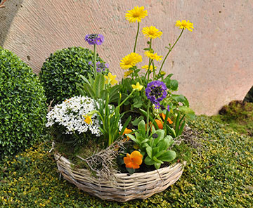 Gepflanzte Trauerkränze, Trauerschalen, Blumensträuße für den Friedhof und Gestecke zu den Totengedenktagen hier direkt online bestellen.